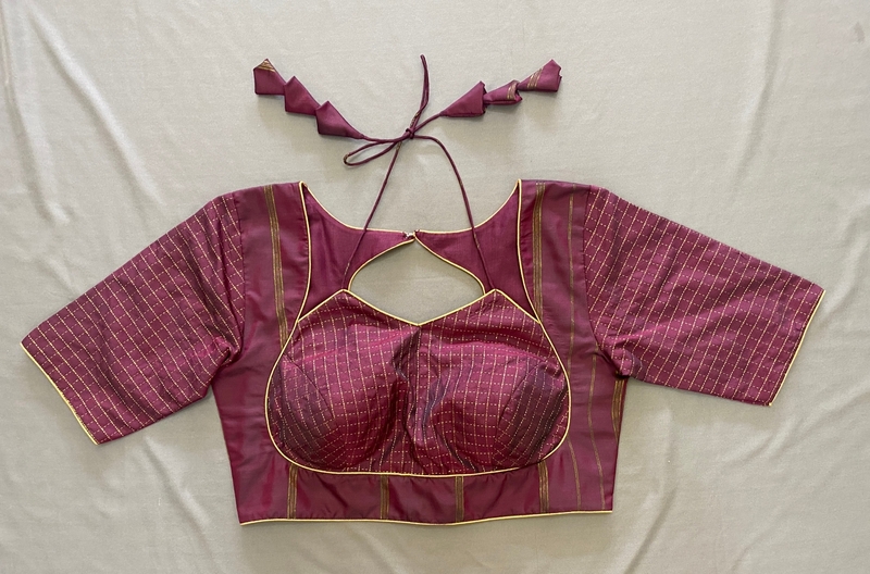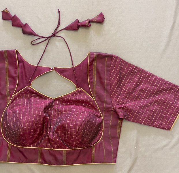 Shop this elegant magenta silk blouse with padded design for a perfect fit. Ideal to pair with silk sarees and festive wear, making it a stylish and comfortable choice.