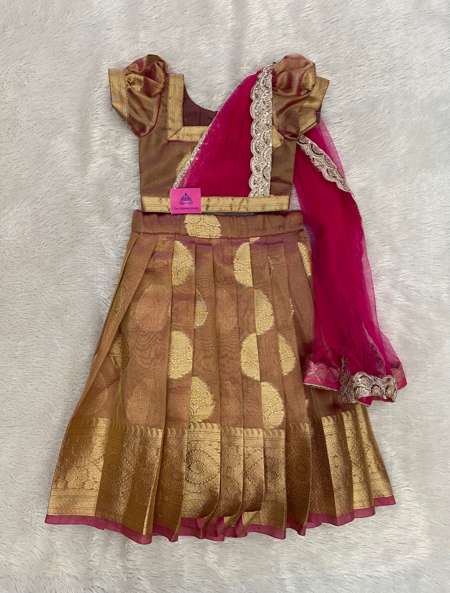 Goldish Semi Tissue Lehenga with Pink Net Attachable Dupatta ā Kids Festive Wear āØš
