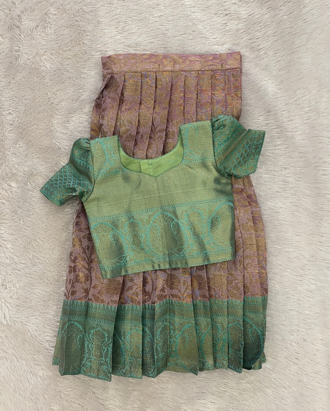 Charming and playful, this kids’ outfit pairs a refreshing sea green top with a graceful onion pink skirt. Designed for comfort without compromising style, it’s perfect for festive occasions and family celebrations.