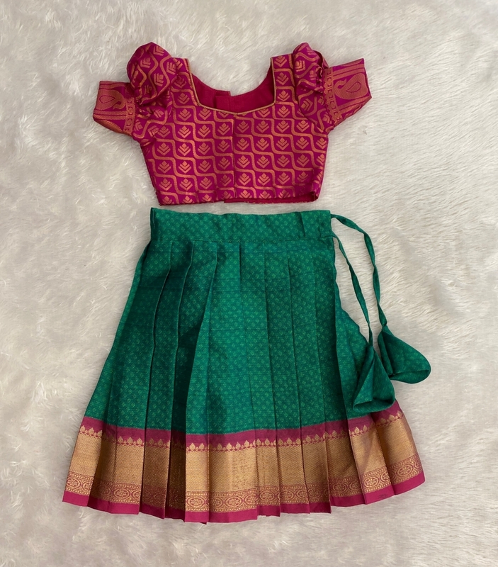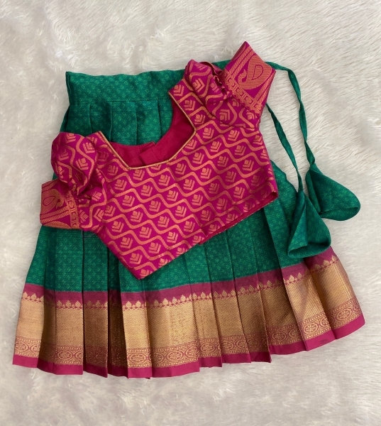 Silk Blend Baby Lehenga with Pink Top & Green Skirt šš